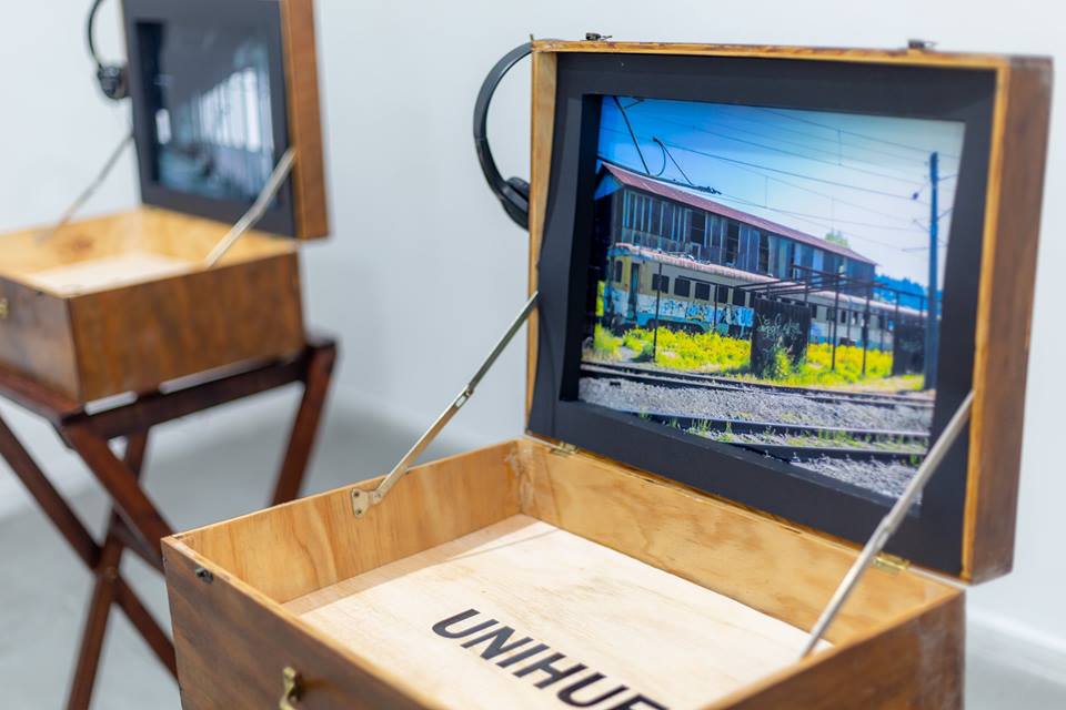 El imaginario regional se estructura de forma primaria en el encuentro con el río Biobío, frontera que configura las coordenadas del territorio y que al mismo tiempo fluye como dimensión de  lo indómito de cara al avance modernizador iniciado con la afirmación del Estado Nación. Así, la cuenca del Biobío ha sido fuente tanto de las expectativas de progreso y desarrollo como de la amenaza latente de un desborde que vuelva  las cosas a un origen ausente de toda racionalidad instrumental. Emblema del proceso de industrialización que caracterizó a nuestro contexto, el ferrocarril traza sus líneas intersecando y recorriendo la ribera del Biobío, atravesando las zonas urbanas y rurales que forman parte del paisaje cultural de la región. En “Maquinaria de Viaje”, Lorena Muñoz B. se concentra precisamente sobre este trayecto, realizando un ejercicio de registro y recuperación de las estaciones que componen el ramal Corto Laja, entre las ciudades de Concepción y Laja.